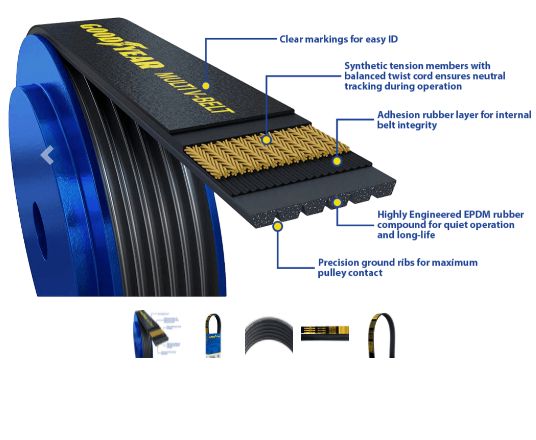 GOODYEAR Serpentine Belt 1060637 K Profile, 6 Ribs, 63.7"